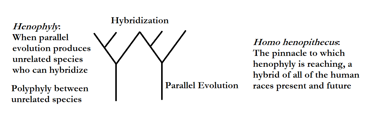 We are used to thinking of species in terms of inherited genetic relation stemming from common ancestors. However, this is an incorrect assessment of species. Species are also thought to be unable to procreate outside of their own groups, at least while having viable offspring. But while interspecific procreation is more difficult, and this difficulty certainly characterizes what a specie is, the idea that species cannot interbreed has long been dispelled. Ligers, for instance, have been shown to be capable of backcrossing, and there has also been much hybridization in our own specie, with a large proportion of our genetic inheritance having come from backcrossing with Homo erectus, Neanderthal, Denisovan, and certain “ghost species.” So while species may be characterized by their difficulty interbreeding with others, and while this generally does imply traits inherited from a common source, this is not always the case. Instead, species should be categorized by their having certain traits in common, despite the origins of those traits. That is, species should be defined largely polyphyletically with recognition of what I will call convergent hybridizability or henophyletics, the ability of species coming from disparate backgrounds to coalesce into a higher form.