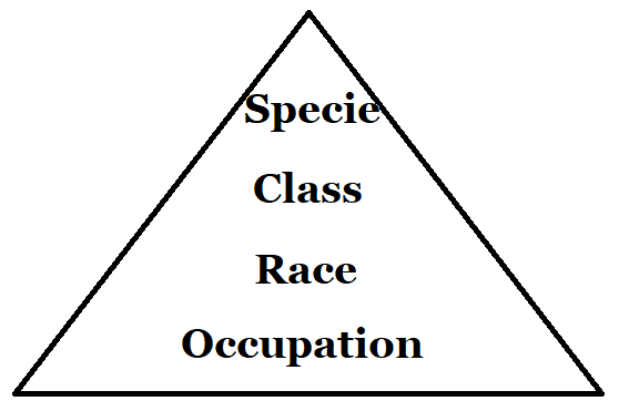 Class is something different from race and species, because it is not considered to be biological in origin. Class refers to the tiered relationship of different people according to their position in the pecking order, specifically to those who can command others, those who are free, and those who are commanded. Class is not always tied to race on a one-for-one basis such that all of a single race composes one class and another race composes another. Oftentimes, there is some overlap, with members of conquered races joining the conquering race in its positions of power or privilege. But class is generally established when one race or ethnicity (subrace) conquers another, with the conquerors becoming the ruling class and the conquered race becoming the abiding class.